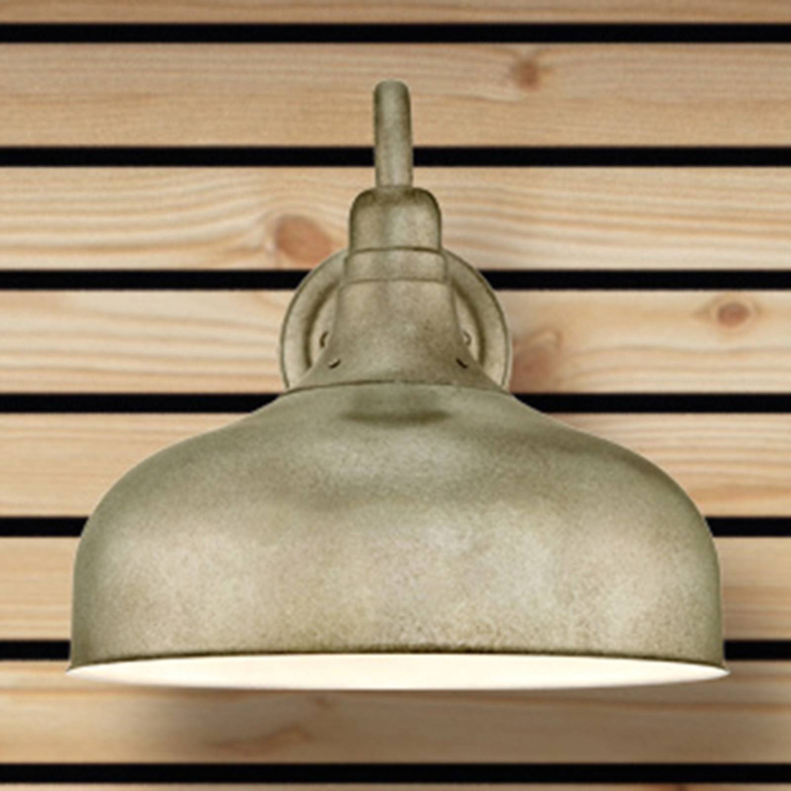 LED-wandlamp Ikarus met verweerde stalen afwerking, IP44 Uit een ronde muurbeugel komt een mooi gebogen arm tevoorschijn, waaraan een grote kap is bevestigd, die zich naar beneden opent en daar zijn licht stuurt. De Ikarus LED-wandlamp, die versierd is met verweerd staal, is visueel zeer aantrekkelijk. De lichte grijs-beige tint maakt het tot een zacht verlichtingselement dat onopvallend samengaat met heldere huisgevels en deze verlicht. Of het nu bij huisingangen, garages of zelfs op terrassen is – het weet de omgeving en vooral de wandelpaden veilig te verlichten. Dankzij efficiënte LED’s combineert deze armatuur moderne technologie met rustieke kenmerken.