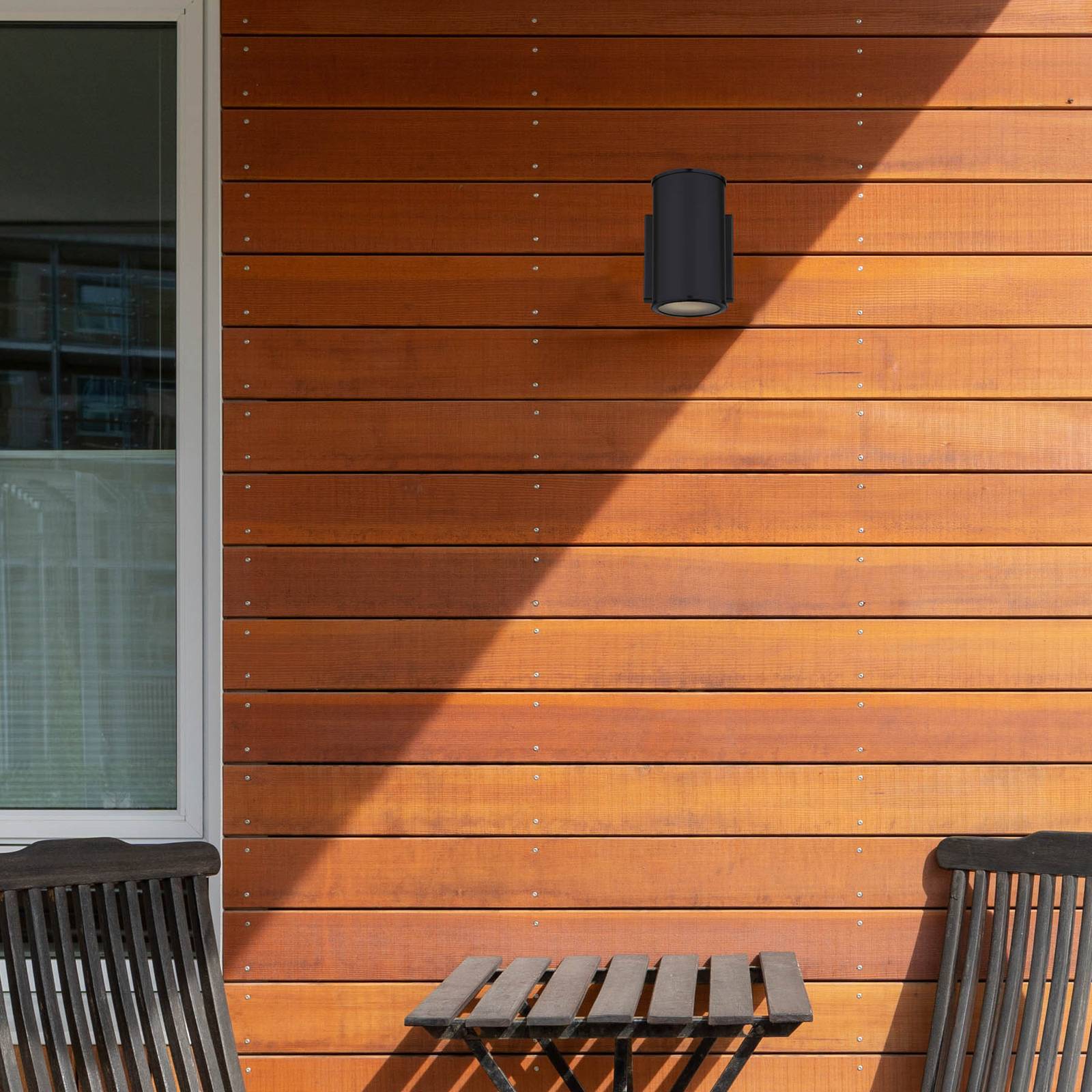 Cilindrische LED-buitenwandlamp Marius met dimbare LED De LED-buitenwandarmatuur Marius is gemaakt van metaal en presenteert zich in de vorm van een cilinder. De afdekking van de geïntegreerde LED is gemaakt van mat glas en zorgt ervoor dat deze buitenwandlamp niet verblindt. De LED-module straalt doelgericht warm wit licht naar beneden of ook naar boven en creëert zo een aangename sfeer. Dit kan verder worden aangepast aan persoonlijke voorkeuren, aangezien Marius extern kan worden gedimd via een fase aan/fase uit dimmer. Op die manier dient hij als betrouwbare lichtbron, of hij nu voor de ingang van het huis staat of – omgekeerd – de gevel verlicht.