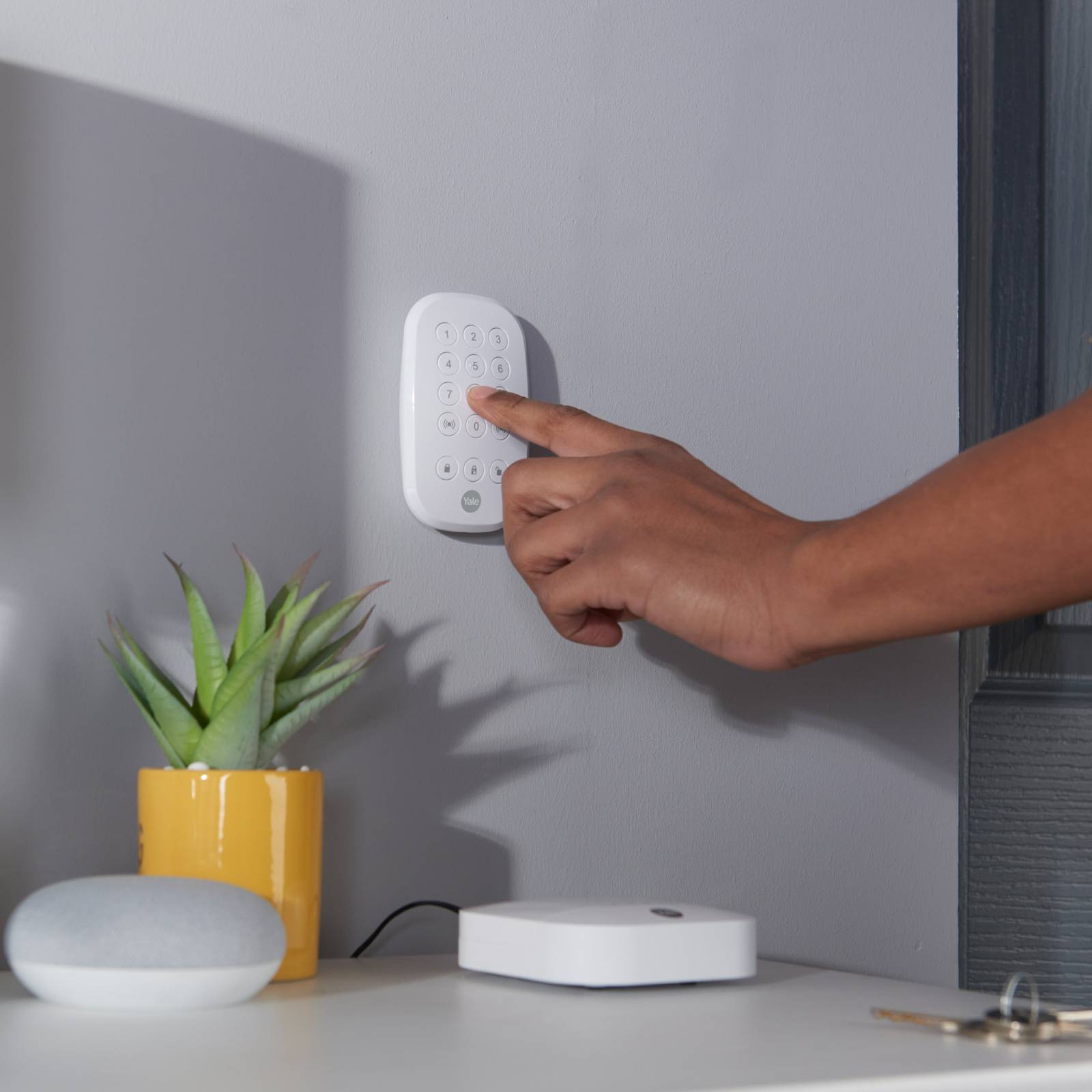 Yale Sync-toetsenbord – volledige alarmbediening, zelfs zonder app! Het Yale Sync-toetsenbord biedt volledige alarmbediening, zelfs zonder app. Het kan worden geïntegreerd in een bestaand Yale Sync alarmsysteem en maakt app-onafhankelijk in- en uitschakelen van het alarm mogelijk. Bovendien kan via het toetsenbord een noodalarm worden geactiveerd, dat alleen via een gebruikerspin weer kan worden gedeactiveerd. Technische gegevens / compatibiliteit: – Sync-toetsenbord voor app-onafhankelijke alarmschakeling – Noodalarm met pinuitschakeling – Uitbreiding van het Yale Sync-alarmsysteem