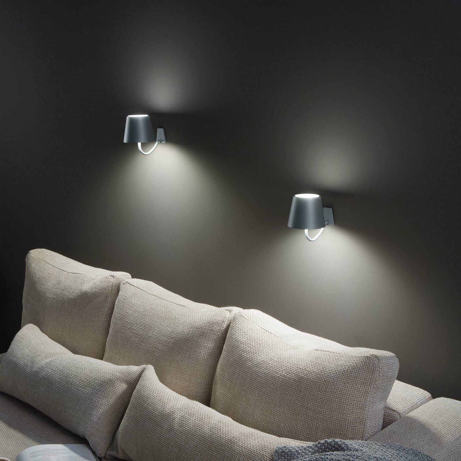 Poldina mobiele wandlamp voor binnen en buiten – met oplaadbare batterijDe Poldina LED oplaadbare wandlamp kan flexibel binnen en buiten worden gebruikt. Met beschermingsklasse IP54 is Poldina bij uitstek geschikt voor buitengebruik en biedt betrouwbare bescherming tegen de elementen. De geïntegreerde geheugenfunctie zorgt ervoor dat het armatuur bij het inschakelen automatisch de laatste helderheidsinstelling onthoudt. De armatuur kan eenvoudig worden opgeladen met de meegeleverde Euro-stekkervoeding met USB. De driver is al bij de levering inbegrepen. Met zijn moderne design en krachtige LED-technologie is de Poldina LED accu-wandlamp de perfecte keuze voor iedereen die behoefte heeft aan betrouwbare en effectieve verlichting. – Oplaadtijd: 6 uur- Verlichtingstijd bij volledig opladen: 9 uur