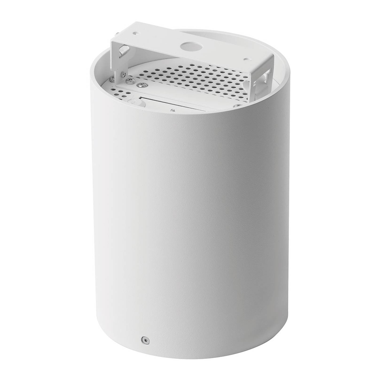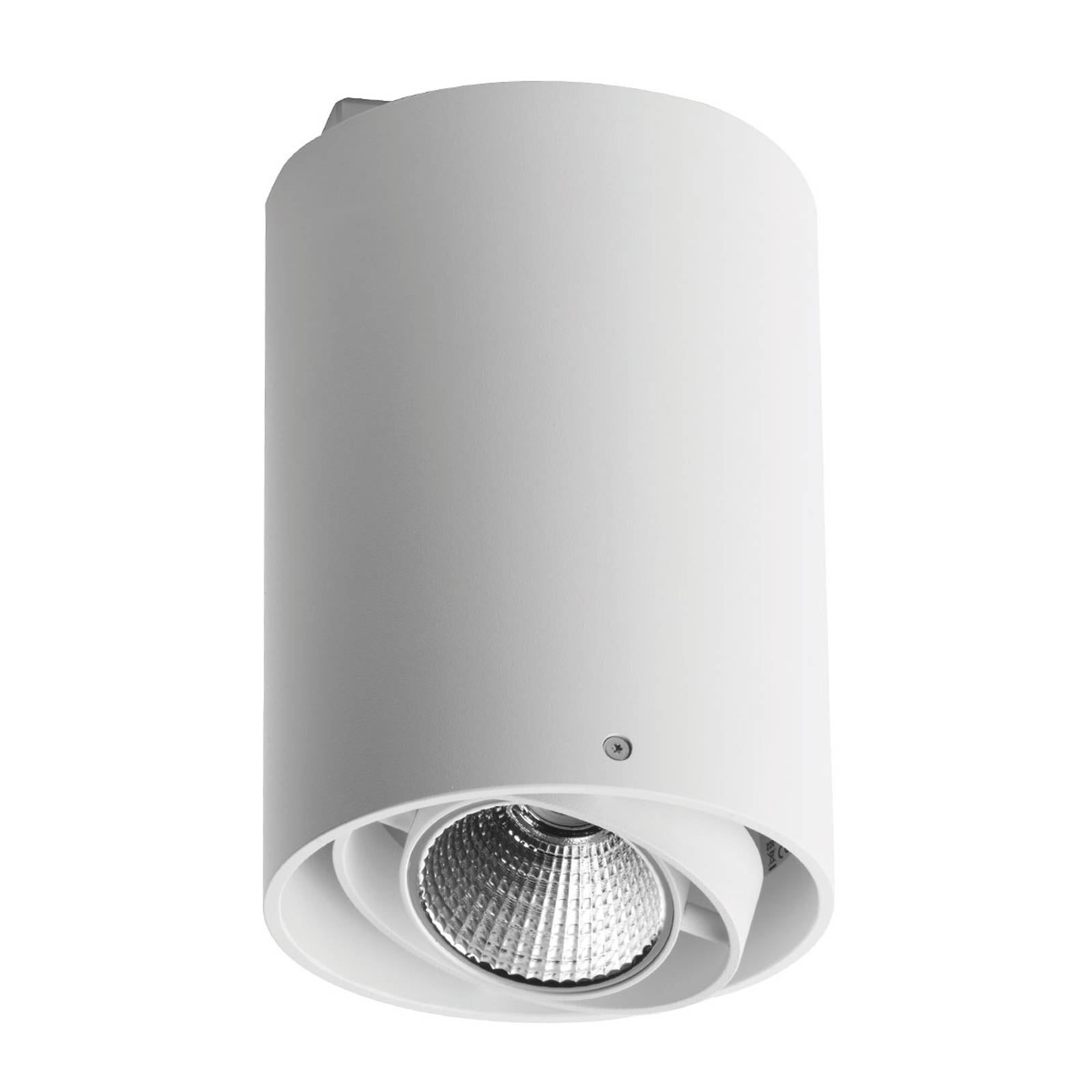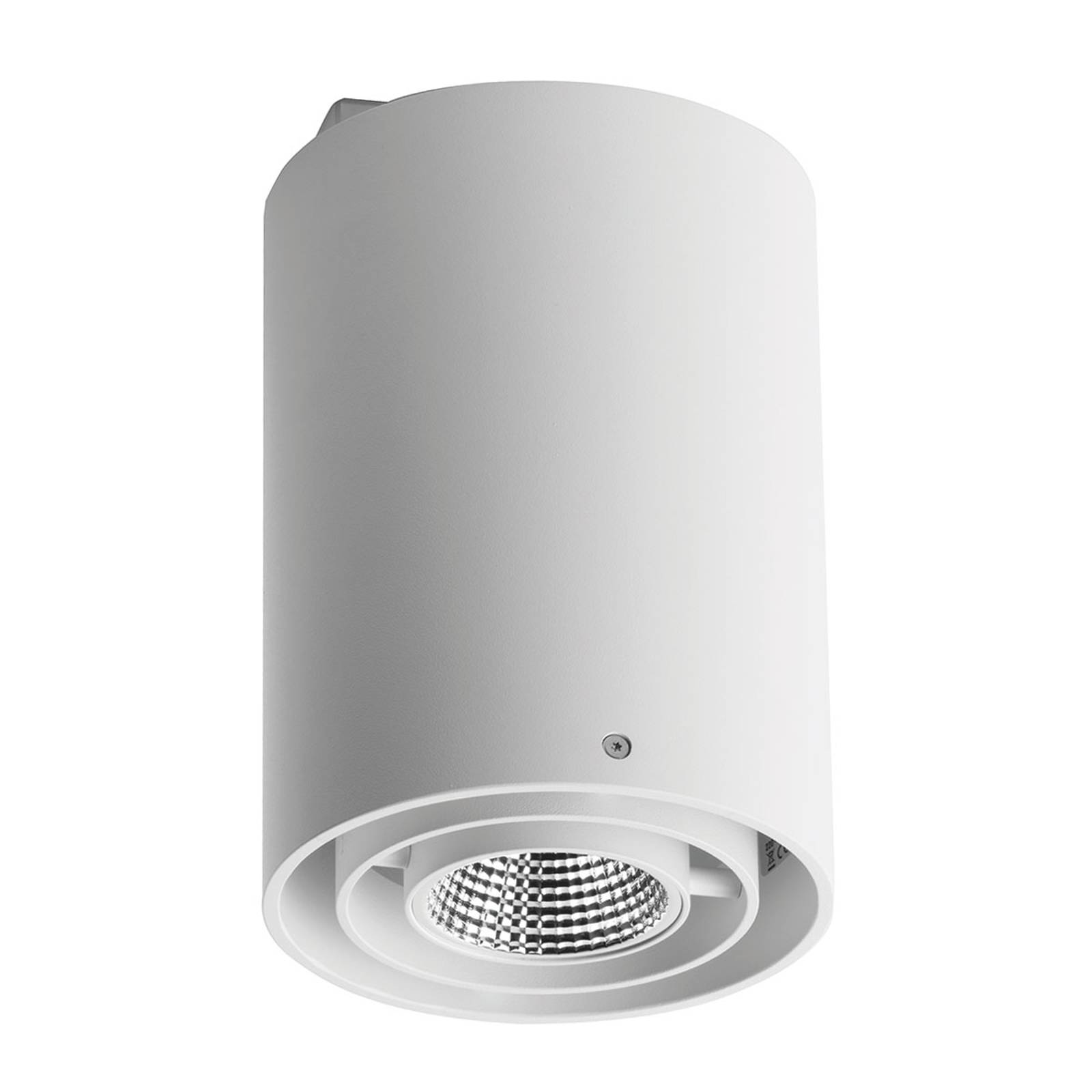De cilindrische, mat-wit gelakte Zipar Surfaced LED plafondlamp is voorzien van een 30° draaibare lampkop, zodat het uitgestraalde licht beneden een hoek van 40° in de gewenste richting kan worden gericht. De behuizing van de armatuur is ontwikkeld van geëxtrudeerd aluminium, de bovenste afdekking is van plaatstaal, de gefacetteerde reflector is gemaakt van geanodiseerd aluminium.